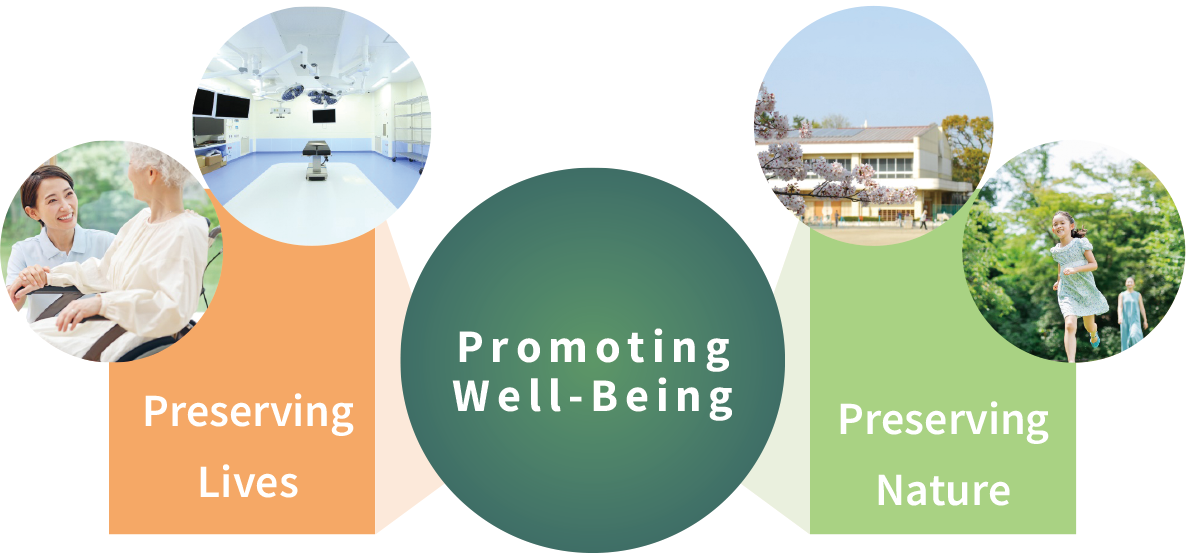 In line with our Group mission of “Creating environments for medical professionals.” we have traditionally focused on domains related to “Preserving Lives”. We further expand the way of capturing the field and expand it to the field of “Creating environments for better living.”